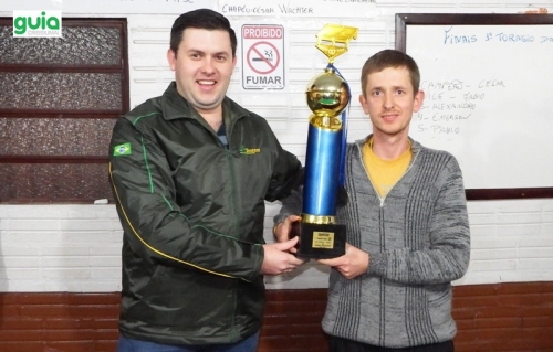 1º colocado, Cesar Waechter, troféu entregue por Rudinei Gest do Sicredi.