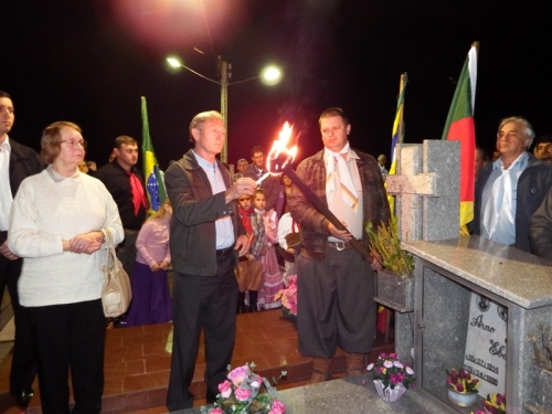 O Reacendimento da Chama Crioula em homenagem ao falecido tradicionalista Arno Ebeling marcou a terça-feira das Comemorações Farroupilhas de 2014 em Crissiumal. O cerimonial aconteceu no Cemitério da cidade, no início da noite desta terça-feira, dia 16 de setembro.