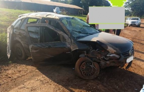 O capotamento foi de um VW Gol e a causa pode ter sido as pedras soltas existentes na pista de rolamento da estrada encascalhada.