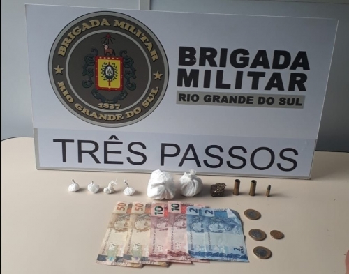 Com os indivíduos foram encontrados 100 gramas de cocaína, 4,6 gramas de maconha, uma munição calibre .22 e três capsulas de munição calibre. .38.