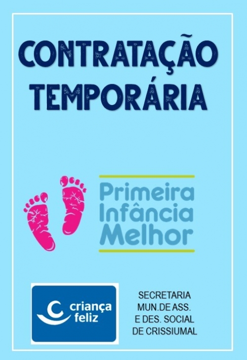 As vagas são: 2 (dois) para Agentes Visitadores do PIM e 1 (um) para Supervisor. Os contratados irão atuar no Programa Criança Feliz.