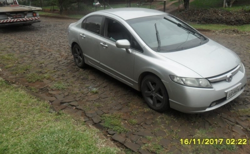 Um Honda Civic, cor prata, roubado, com placas da cidade de Vila Flores RS, foi recuperado na Rua Buricá, no Bairro Vila Nova.