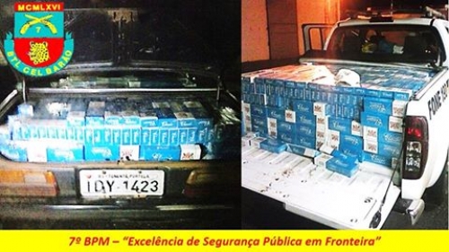 No interior do veículo foram localizados 10.000 (dez mil) maços de cigarros oriundos do Paraguai.