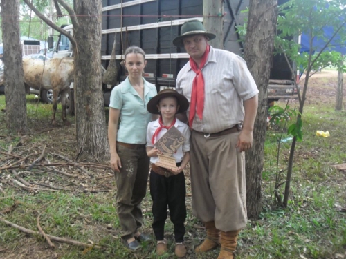 A pequena Prenda crissiumalense Luiza Hagemann, filha do tradicionalista Alexandre Hagemann, foi a vencedora do concurso do laço na Vaca Parada do Rodeio de Sede Nova neste final de semana.