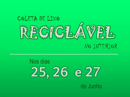 Conforme acontece trimestralmente, a Secretaria Municipal de Obras Públicas de Crissiumal estará realizando a coleta do lixo seco (reciclável), nas localidades do interior do Município, nos dias 25, 26 e 27 de junho. Confira o roteiro: