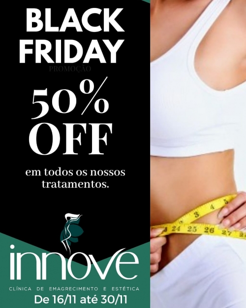 A Clinica de Emagrecimento e Estética Innove esta participando do Black Friday com 50% de descontos em todos os seus tratamentos.