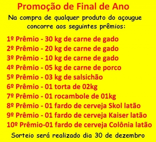 Comprando no Mercado Bohnert concorre a diversos prêmios, sorteio acontece no dia 30/12