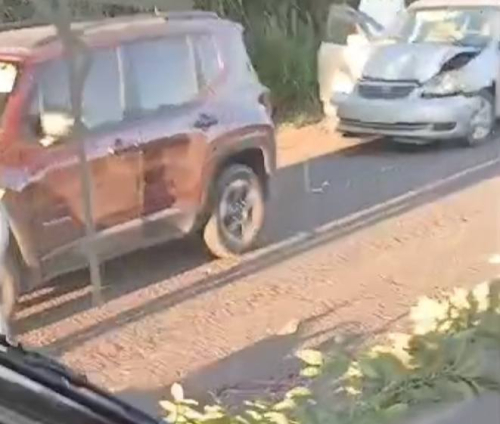 A colisão envolveu um veÃculo de passeio, uma motocicleta e outros três veÃculos