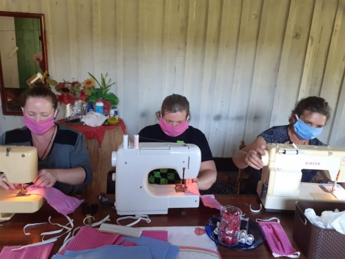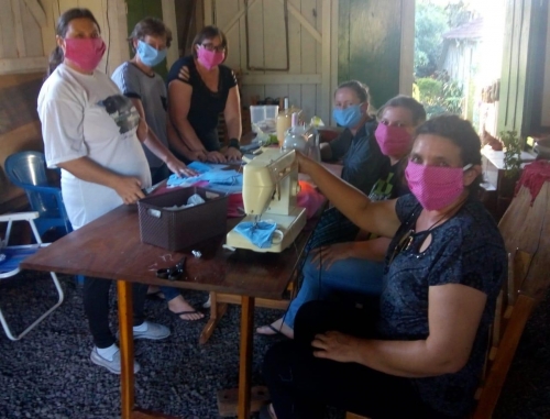 Preocupadas em proteger a si próprios e suas famílias, além das pessoas com que convivem, em meio à pandemia de coronavírus, neste sábado (18/04) mais um grupo do lar orientado pela extensionista da EMATER de Crissiumal Angela Cervi trabalhou na confecção de máscaras de proteção facial. Foi o grupo Unidas Venceremos de Bela Vista Schmidt.