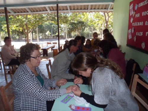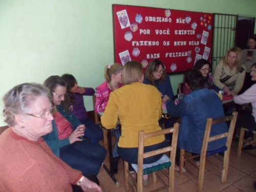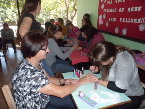 A surpresa do dia foi uma bela mensagem de seus filhos em vídeo e as professoras tornaram o dia mais alegre pintando as unhas de todas as mães presentes.