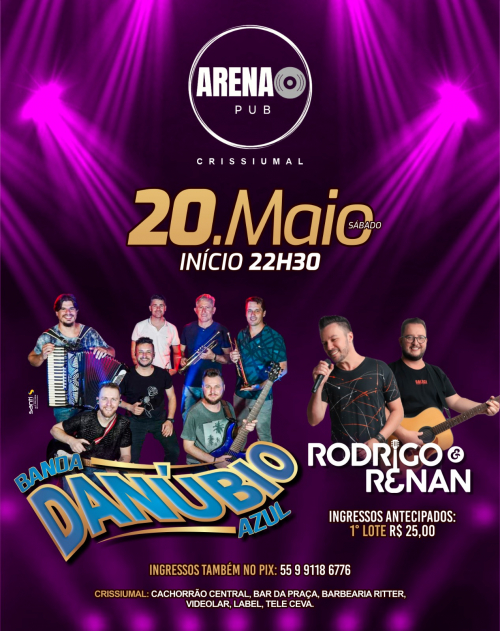 Comercial - 19/05/2023 - Banda Danúbio Azul e Rodrigo e Renan na Arena Pub em Crissiumal neste sábado