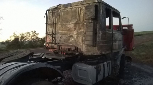 Trânsito - 19/06/2014 - Caminhão pegou fogo nas proximidades do trevo de Campo Novo