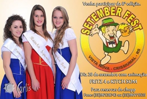 A SETEMBER FEST teve seu primeiro evento no ano de 2006, quando a Sociedade Tiradentes de Vista Nova, na época dirigida por Rubia Eckert em conjunto com a diretoria e um promotor de eventos, tiveram a genial ideia de criar um evento tradicional que se repetisse a cada ano ou eventualmente a cada 2 anos e que caracterizava e mostrava um pouco da cultura popular local. E assim se criou a SETEMBER FEST como sendo uma festa típica da cultura alemã, caracterizando assim a origem da maioria do povo local.