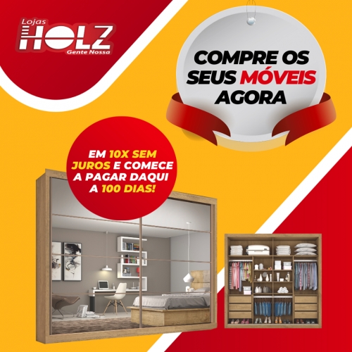 Nas Lojas Holz você encontra Toda a Linha de Móveis em 10X SEM JUROS com o primeiro pagamento para daqui a 100 dias!
