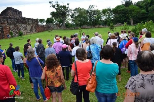 Ao chegar no Sítio Arqueológico de São Miguel Arcanjo, popularmente conhecido como Ruínas de São Miguel das Missões, declarado patrimônio histório-cultural da humanidade, o grupo recebeu uma aula sobre os principais acontecimentos históricos que ocorreram naquele lugar. O conjunto de ruínas da antiga redução de São Miguel Arcanjo, integrante dos chamados Sete Povos das Missões, é um dos principais vestígios do período das Missões Jesuíticas dos Guaranis, em todo o mundo. O sítio arqueológico também abriga a maior coleção pública do país de imagens sacras.