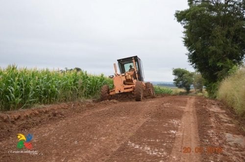 Nesta terça-feira, 20 de março, estão sendo realizados os trabalhos de patrolamento na estrada que liga as localidades de Vista Nova e Mato Queimado. A umidade do solo em proporção ideal favoreceu a realização do serviço. Duas motoniveladoras estão recuperando a via e realizando a limpeza das sarjetas, possibilitando o escoamento das águas das chuvas.