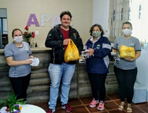Durante a semana passada a APAE confeccionou 265 unidades de máscaras para serem entregues aos professores das Escolas Municipais à pedido da Secretaria Municipal de Educação. Como medidas preventivas também estão sendo confeccionadas e entregues aos alunos e familiares máscaras na prevenção do COVID-19.