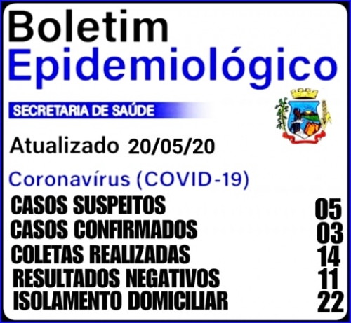 Conforme Boletim Informativo atualizado, 22 pessoas estão em isolamento domiciliar no município.