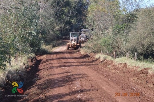 A Secretaria de Obras Públicas de Crissiumal está realizando melhorias durante esta quarta-feira (20), na estrada principal da localidade de Lajeado Boi.