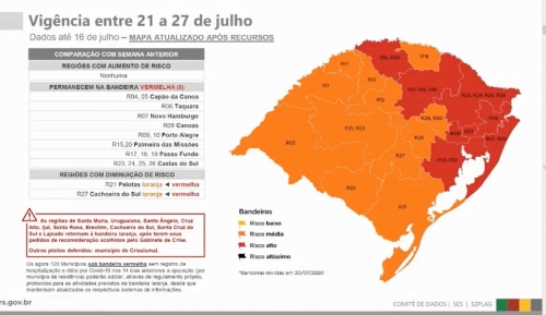 Em caso de bandeira vermelha diversas restrições aconteceriam em relação ao funcionamento do comércio, indústria e serviços. Mesmo assim o Governador apelou para a necessidade dos cuidados, uma vez que a Covid-19 segue se espalhando pelo RS.