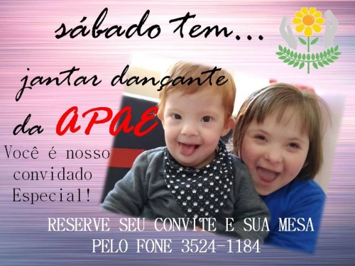 O Jantar Dançante da APAE de Crissiumal acontece no próximo sábado, dia 24 de agosto, iniciando às 20h30min, no CTG Estância da Saudade.