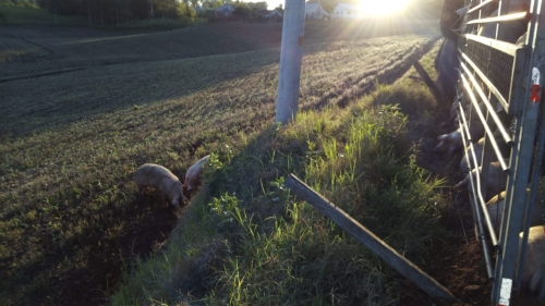 Suínos que eram transportados no caminhão acabaram soltos ao lado da via.