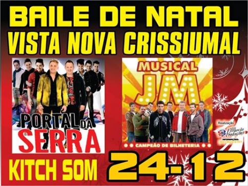 Mega Bailão de Natal com Portal da Serra, Musical JM e Kitch Som em Vista Nova - Crissiumal. Início 23h30min.