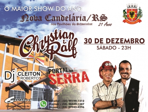Em comemoração ao aniversário de 21 anos de emancipação do município de Nova Candelária, o dia 30 de dezembro ficará na memória dos amantes da boa música, que irão prestigiar nos Pavilhões da Schweinfest o Show Nacional com a dupla Chrystian e Ralf.