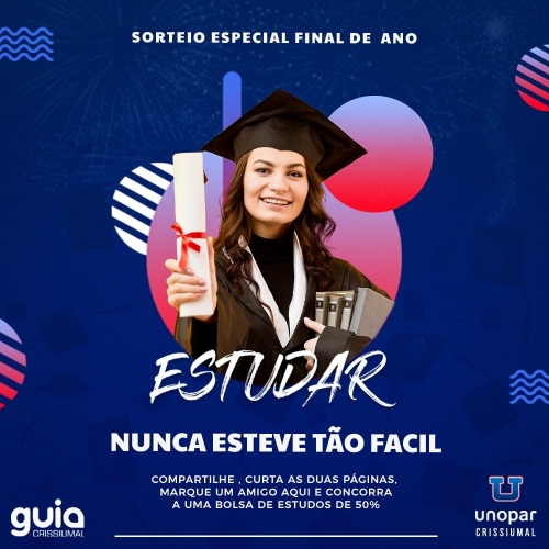 Neste sábado (19) a Unopar e o Guia Crissiumal lançaram uma promoção de final de ano, com o sorteio de uma bolsa de estudos de 50%.