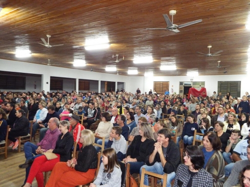 Uma grande plateia acompanhou a palestra que aconteceu na noite desta terça-feira (21) no Salão Paroquial Católico da Cidade.