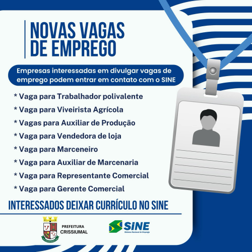 Empresas que queiram divulgar suas vagas também podem procurar o SINE para cadastrar oportunidades.