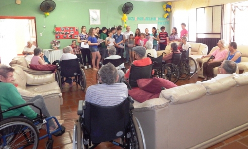 Na tarde desta quinta-feira a atividade incluiu um lanche compartilhado, que foi saboreado entre os estudantes e os internos da casa. Ao todo 25 pessoas residem no Lar dos Idosos de Crissiumal, sendo que destes 16 são cadeirantes.
