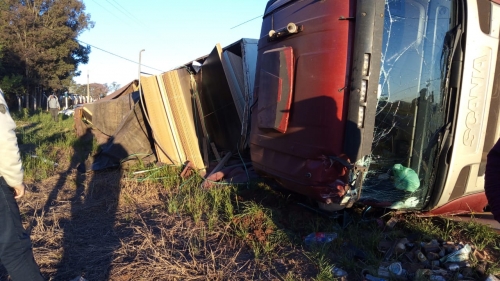 A carreta que trafegava no sentido de Palmeira das Missões a Coronel Bicaco quando por motivos desconhecidos o motorista perdeu o controle e tombou. A carreta estava carregada com chapas de MDF, e informações extra oficial o motorista foi socorrido e encaminhado ao Hospital de Caridade de Palmeira das Missões.