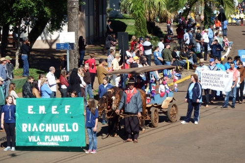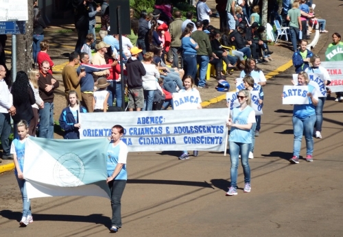 Escolas, entidades culturais, órgãos da Administração Municipal e empresas participaram do desfile, que envolveu pessoas das mais variadas faixas etárias. Demonstrações de amor à Pátria e também ao Estado do Rio Grande do Sul foram o ponto alto do desfile.
