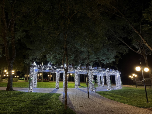 Agora, com a iluminação instalada e os enfeites de Natal, a praça virou ponto de visitação noturno da cidade, pela sua beleza.