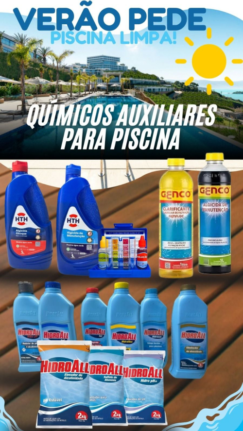 A CasaTua trabalha com linha completa de produtos para piscinas, com marcas de confiança como HidroAll, HTH e Genco.