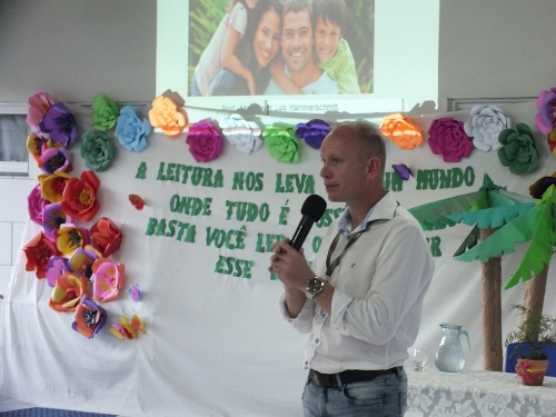 O primeiro dia de Feira do Livro da Escola Benno Bender de Crissiumal foi encerrado com um momento cultural com apresentação dos alunos da educação infantil e séries iniciais da escola, além de uma palestra para as famílias e alunos da escola com o tema:” Família e Escola: um pacto pelo desenvolvimento humano”, com o Professor Vianei Luis Hammerschmitt– da FAI Itapiranga.