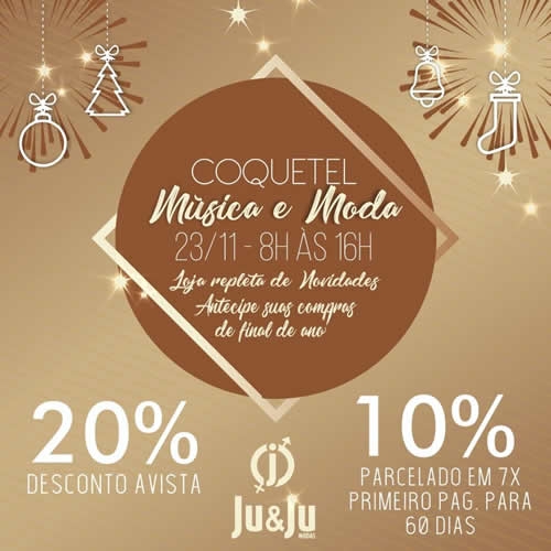 JU & JU Modas terá um dia muito especial para você cliente.Nesse sábado, dia 23 de novembro, atendimento das 8:00 ao meio dia e das 13:30 as 16 horas.