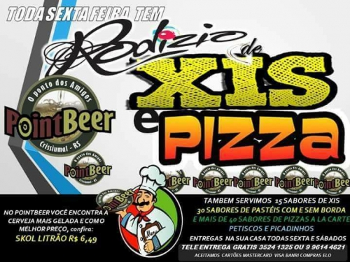 O PointBeer realiza nesta sexta-feira, dia 22 de dezembro rodizio de xis e pizzas. Promoção em cervejas: Skol litrão R$ 6,49 a unidade.