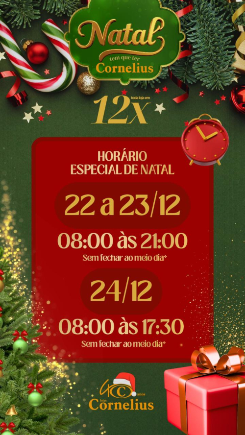 Comercial - 22/12/2025 - Horário Especial de Natal Lojas Cornelius