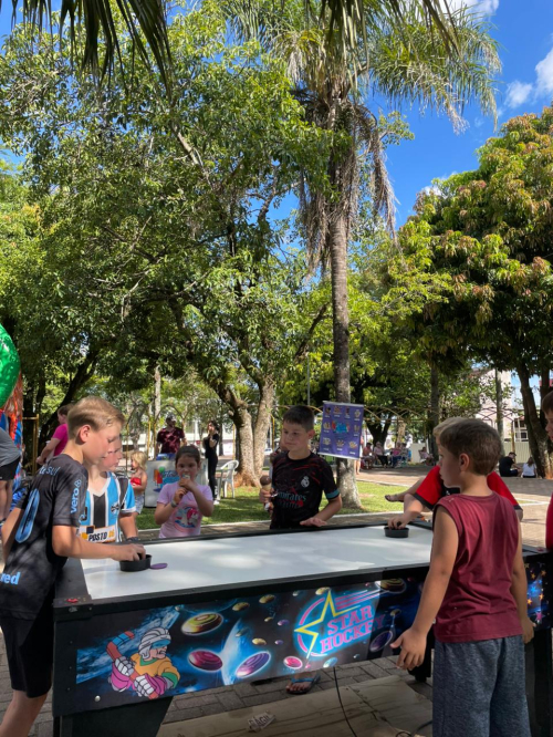O evento contou com muita diversão para as crianças: brinquedos, algodão-doce e a tão esperada chegada do Papai Noel. Um momento de alegria, união e espírito natalino!
