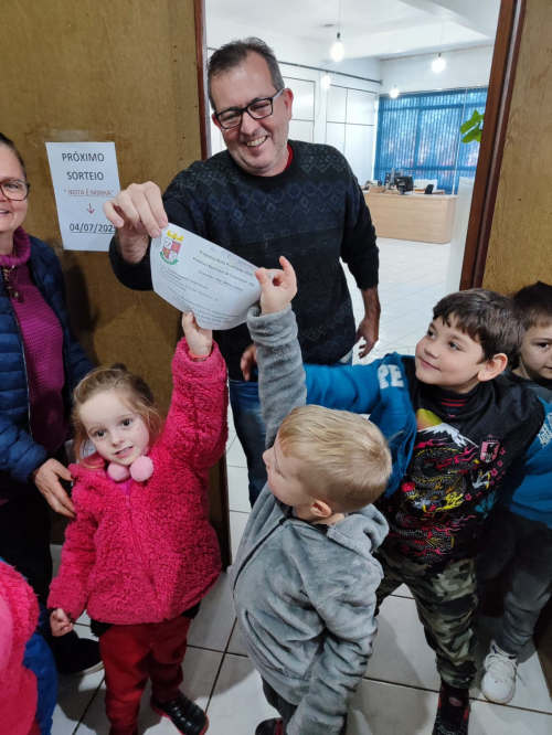 Junto as famílias, também foi solicitado o envio de cupons fiscais de compras realizadas nos comércios. Em um outro momento foi realizado mais um passeio até a prefeitura Municipal de Crissiumal, momento este que os alunos, juntamente com as professoras, se deslocaram até o setor de ICMS, trocando os cupons fiscais trazidos de casa, juntamente com o cupom fiscal da compra individual das frutas de cada aluno, contribuindo para o futuro retorno dos impostos e ainda para concorrer a prêmios no próximo sorteio, sendo a soma do valor dos cupons foi colocado em nome de um responsável por cada turma e a cartela foi entregue para a equipe diretiva que irá acompanhar os sorteios dos prêmios.