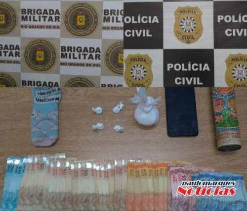 Próximo ao meio-dia desta quarta-feira (22) agentes policiais da Delegacia de Polícia de Horizontina juntamente com policiais militares da Brigada Militar abordaram um homem em via pública sobre o qual havia denúncia de tráfico de entorpecentes, sendo apreendido com o mesmo quatro buchas de cocaína embaladas e prontas para a venda. Diante da informação de que o homem teria mais droga e dinheiro proveniente do tráfico em casa, o Delegado Rodrigo Bozzetto solicitou ao Poder Judiciário mandado de busca e apreensão na referida residência, sendo o mandado deferido e cumprido na tarde desta quarta-feira. Na residência foi apreendido mais uma quantidade de drogas do tipo cocaína e dinheiro em espécie. Na residência ainda uma mulher foi presa.