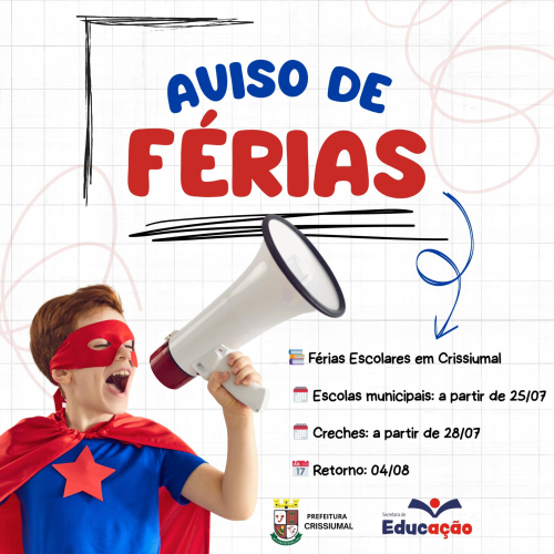 A Secretaria de Educação de Crissiumal informou que, a partir de sexta-feira, 25 de julho, as escolas municipais entram em férias de inverno.