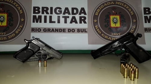 Durante a revista veicular foi localizado no automóvel duas pistolas, uma calibre 9mm, com 13 munições e outra calibre 380, com 2 munições.