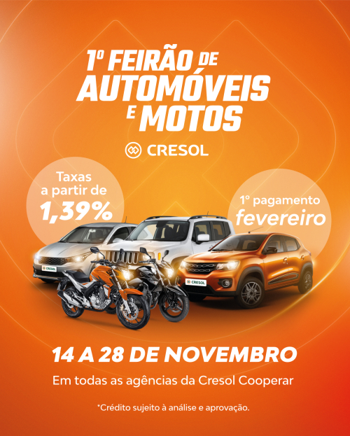 Cresol Cooperar promove seu 1º Feirão de Automóveis e Motos