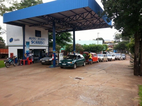 Nas fotos abaixo das 17h20min as enormes filas no Auto Posto Sorriso: