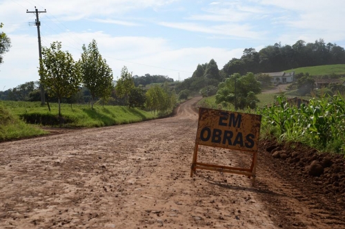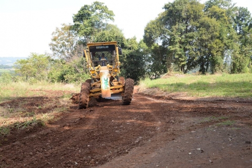 O trabalho de encascalhamento e patrolamento nas estradas rurais também aconteceu em acessos a propriedades, estradas de roças e em parte das localidades de Santo Antônio e Lajeado Barreiro.