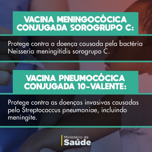 Portanto a Secretaria da Saúde alerta, ao primeiro sintoma vá a uma unidade de saúde! O Posto de Saúde dispõe de Vacina Meningocócica C, que protege contra a meningite C. Devem ser vacinadas as crianças de 3 (três) e 5 (cinco) meses, reforço com um ano. Adolescentes de 11 a 14 anos devem receber dose única como reforço.