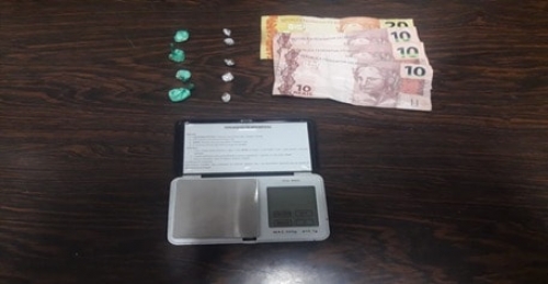 No local foram apreendidos 05 pedras de crack, 04 buchas cocaína, 01 balança de precisão e R$ 50,00 em espécie. Questionado sobre a moto, informou que tinha vendido e estava na vila Bela União em Horizontina.